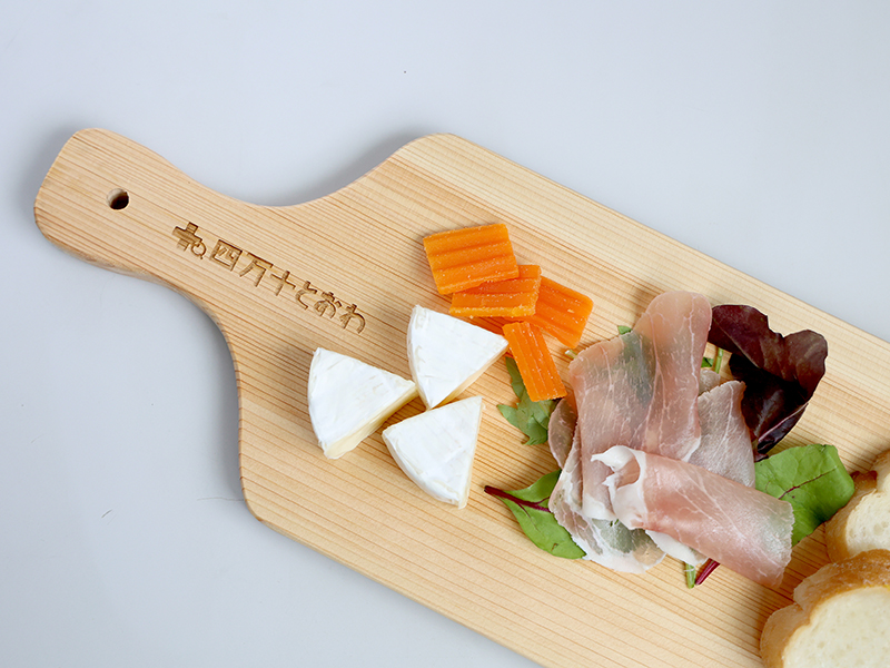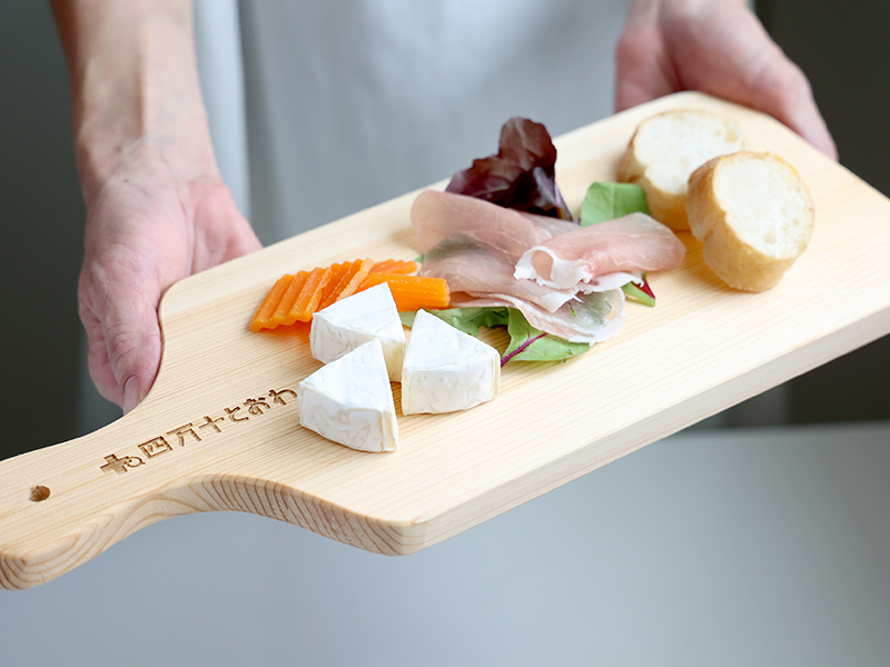 木目のきれいなカッティングボードです。森の匂いがするような四万十川流域のひのきでできたボードは、まな板というよりプレートに使いたい。ナッツたっぷりの手づくりパウンドケーキを切り分ける。ベーカリーで買った季節の新作パンを盛り合わせて。おにぎりとお漬物・だし巻き卵で和風ワンプレートランチ。明石焼き風にたこ焼きをならべて。グリルした牛肉と野菜でメインディッシュに。和洋問わずどんなお料理でも、お菓子やフルーツだって合います。天然木は素朴さと上質さ、両方を感じられる魅力があります。